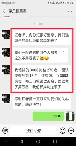 面試上岸有保障(指最終報考單位錄取)。 歷年來,事業(yè)單位面試培訓班上岸率有保障,均有據(jù)可查。博學面試課程體系無論是課程的深度、廣度、實戰(zhàn)性還是歷屆學員口碑和美譽度都遠高于其他同類輔導機構(gòu)。面試狀元、最后一名反超成功的比比皆是。 |
