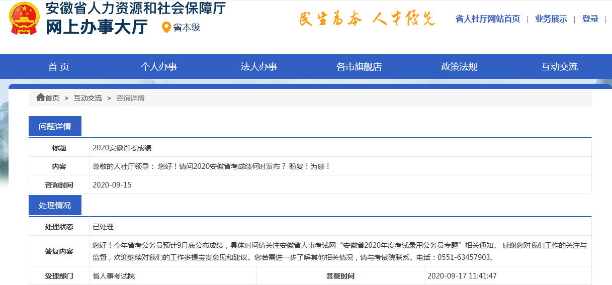 安徽人事考試網(wǎng):2020安徽省考筆試成績將于9月底正式發(fā)布!