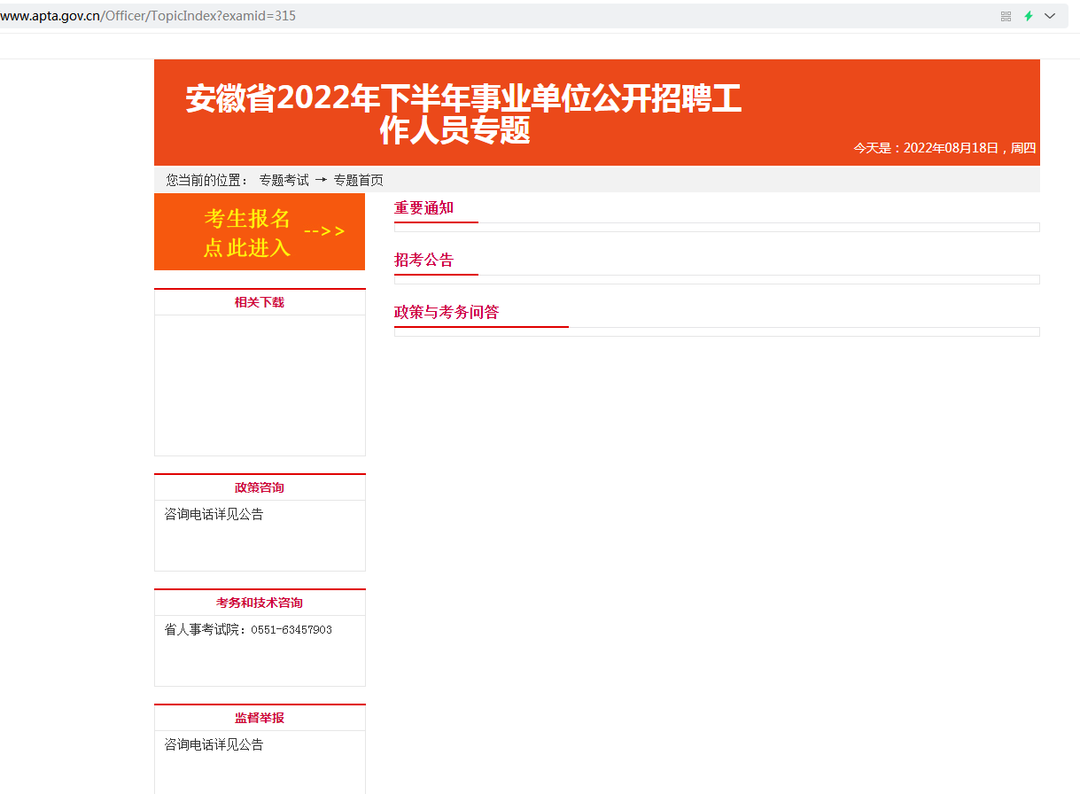 2022年安徽下半年事業(yè)單位公開招聘工作人員專題已出