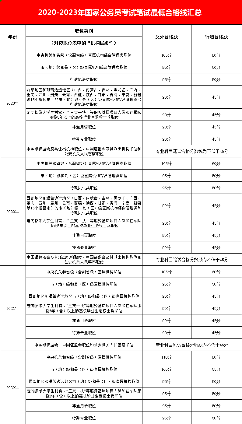 中央機關及其直屬機構2023年度考試錄用公務員筆試成績和合格分數(shù)線公布,具體如下: